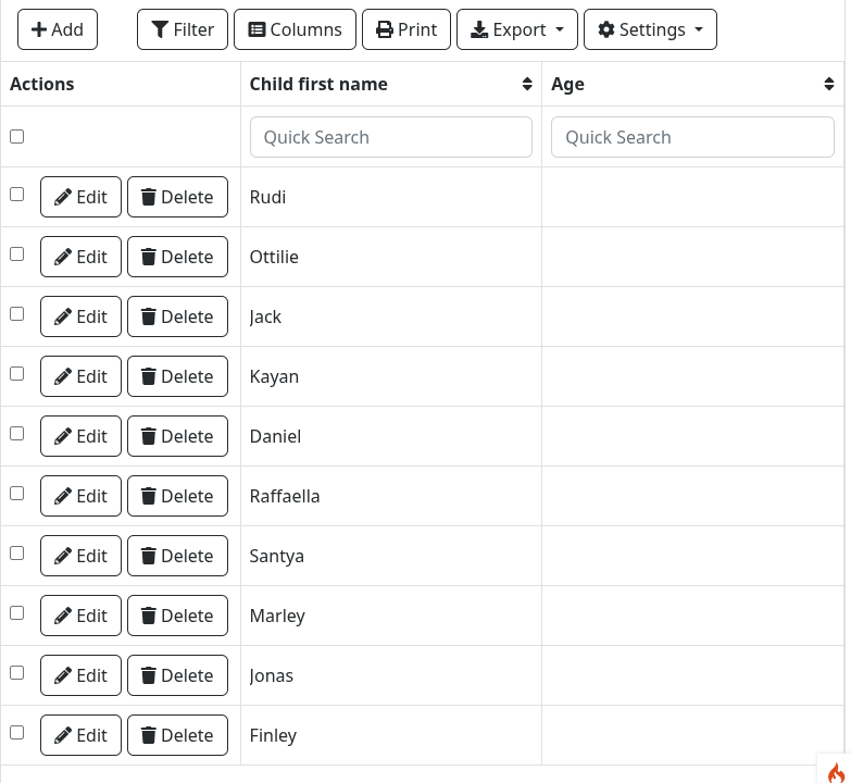 I added the $crud->fieldType(‘Age’, ‘virtual’); line because gc complained ‘Age’ wasn’t in the database.